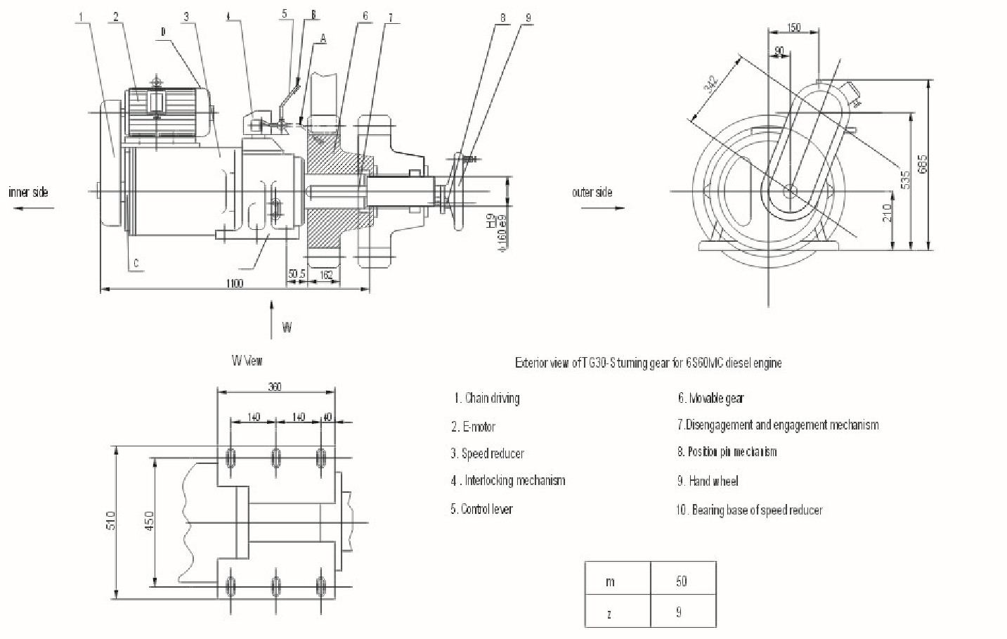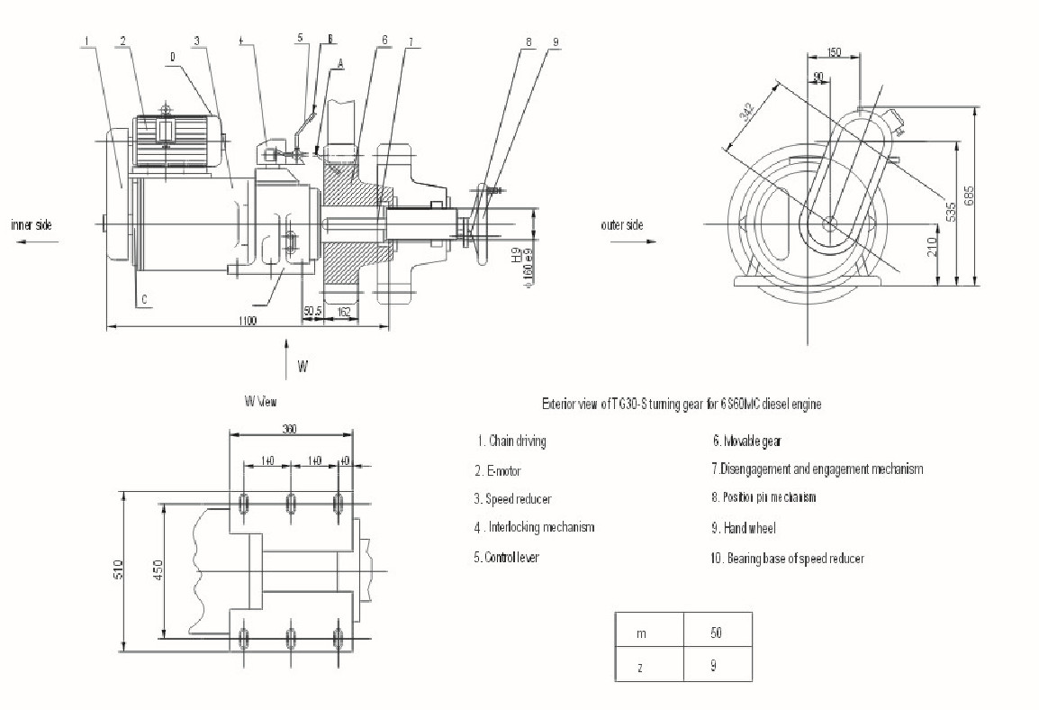 Esta engrenagem de gerencio é usada pondo em marcha os eixos de manivela do grande tipo de baixa velocidade L/S60MC dos motores diesel.